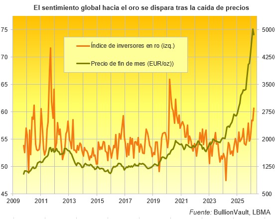 El sentimiento inversor en oro nunca fue más fuerte fuera de una crisis financiera o del Covid...